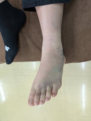 正座して立つ時に捻り足首を負傷
