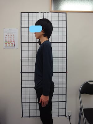 施術後、下肢の長さも正常になり、大腿部、ふくらはぎの緊張も軽減し、猫背も骨盤、