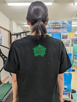 前後屈痛、練習中に支障がある為、関節調整、KT、マイオを使用しました