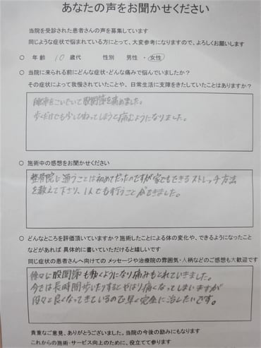 日常生活に支障がある為、関節調整、マイオを使用しました