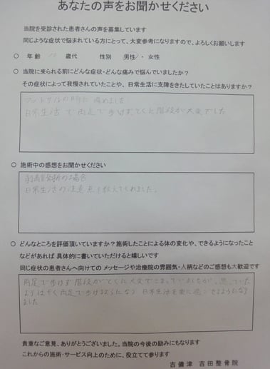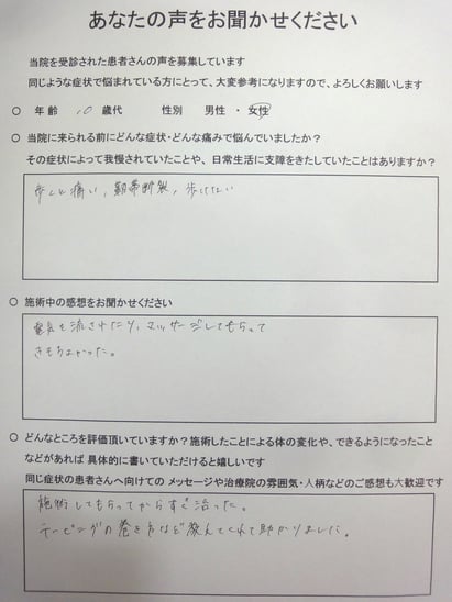 3回目の施術で、歩行も可能になりました。